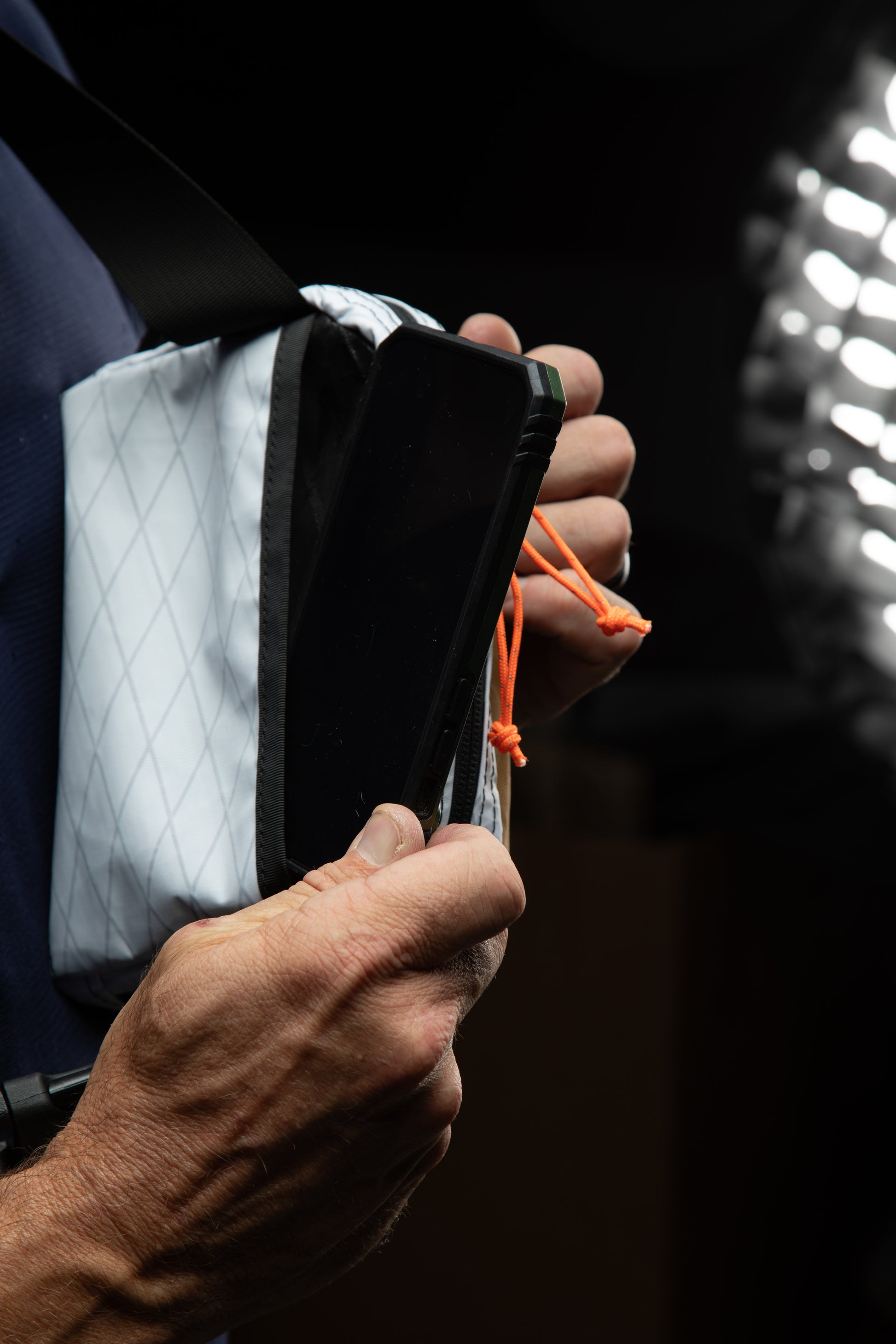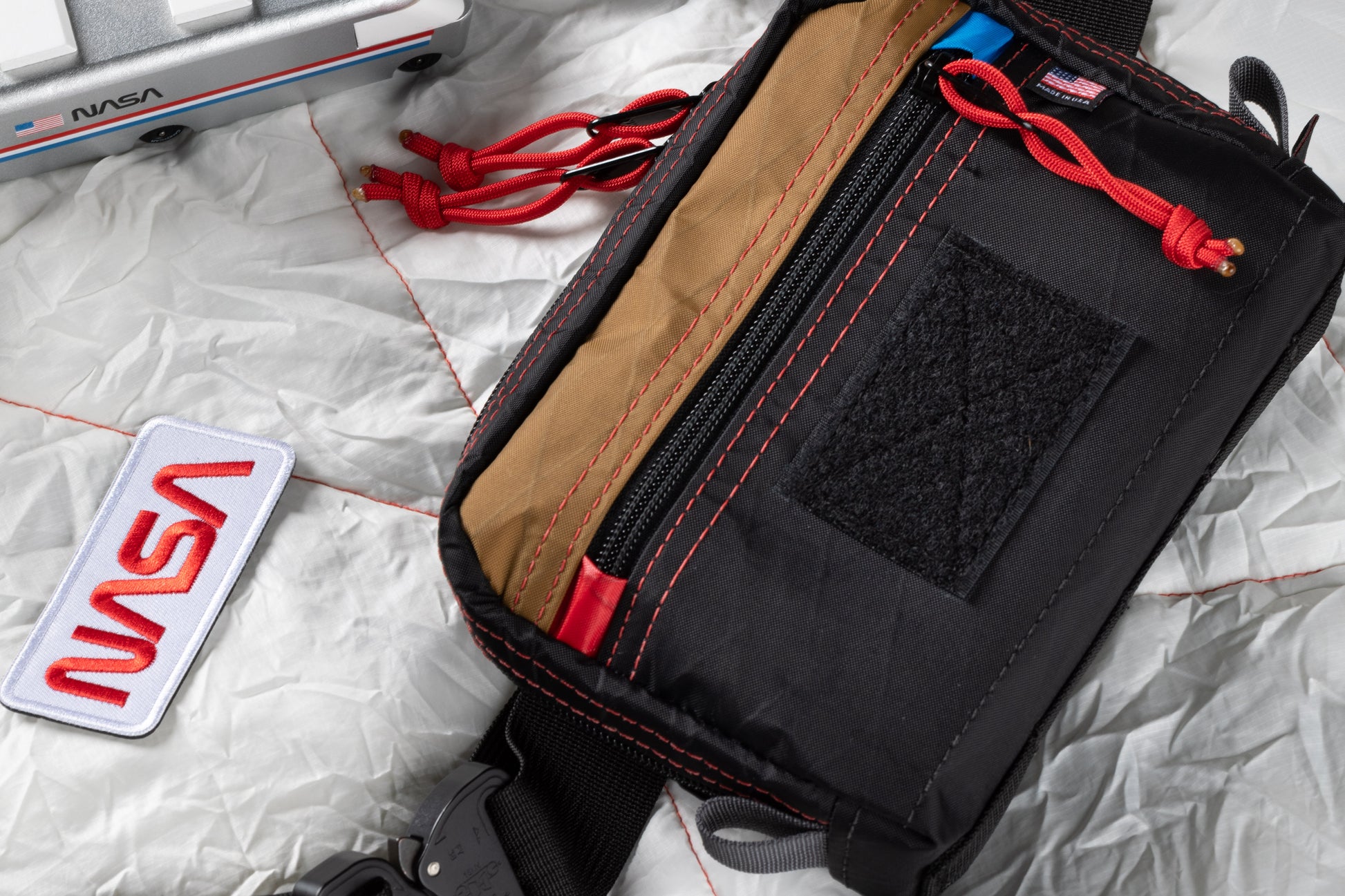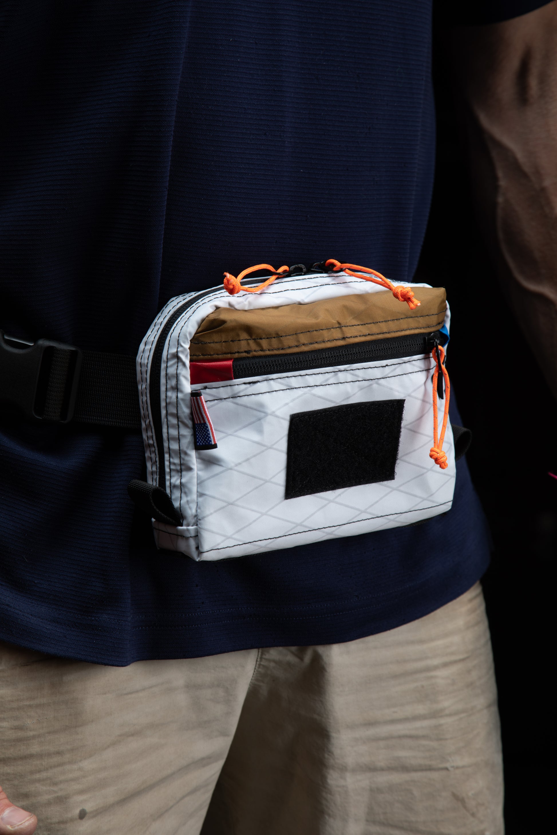 The American Belt Bag is constructed out of the best American made ultralight material on the market: the UX10 by Dimension Polyant. This material is extremely light, strong and 100% waterproof, perfect for a light weight belt bag.