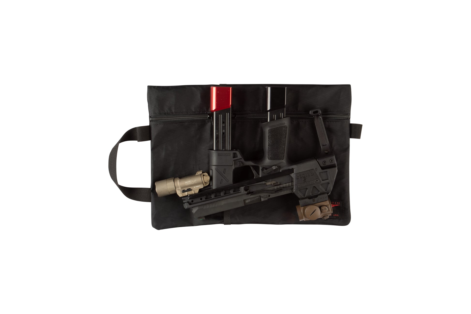 The main zipper pocket fits the Raider with optic and 21 round magazines. The back has elastic magazine holders that can hold up to five magazines.